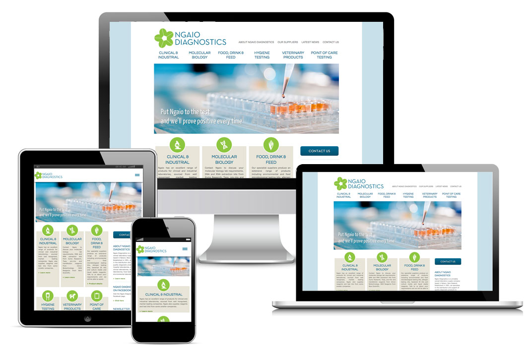 Karebou was contracted by a Nelson based web design company to create the design for Ngaio Diagnostics. The requirements for the design were that it be user friendly, clean and crisp looking, and professional. A logo was designed at the same time.